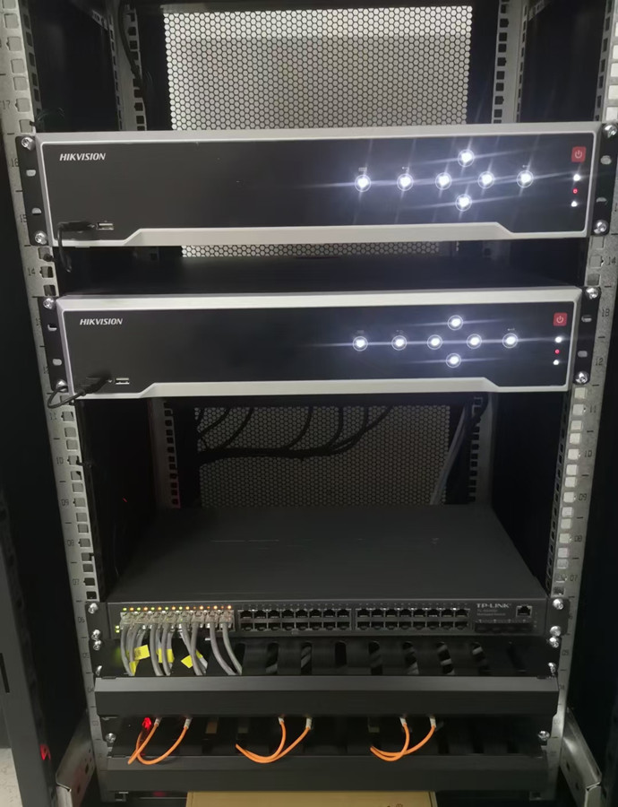 項目需求:該廠房監控項目一共有5層樓,是該公司新租的廠房,在投入使用前需給廠房安裝監控系統一套,主要包含海康威視監控槍機38臺,海康威視監控球機2臺,海康威視監控半球型攝像機10臺,海康威視電梯專用攝像機3臺,一共53臺監控攝像機,用兩臺監控主機去添加,通過兩塊打屏上墻顯示。
